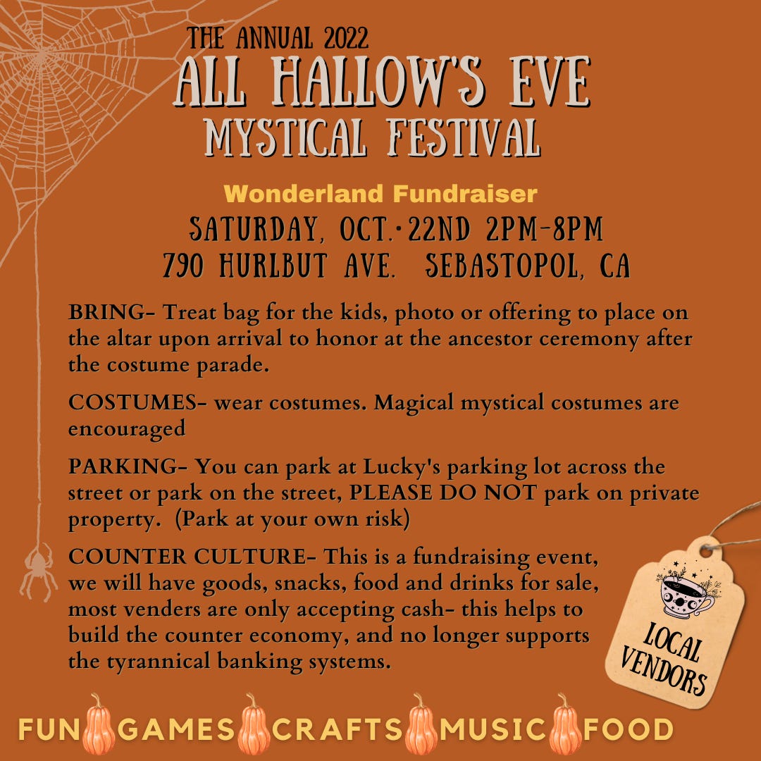 ✴️ You're invited along with your friends and family to join us on October 22 at the All Hallow's Eve Mystical Festival from 2-8pm! We would love to celebrate with you! This event is open to everyone who believes in FREEDOM so be sure to invite your peeps! See our entertainment line up below. This is a fundraising opportunity for Miss Daisy's Magical Wonderland Event Center. We can't wait to see you all there! PLEASE GET TICKETS HERE! If you want to get a vendor booth or volunteer at the Festival, please click here for more info.